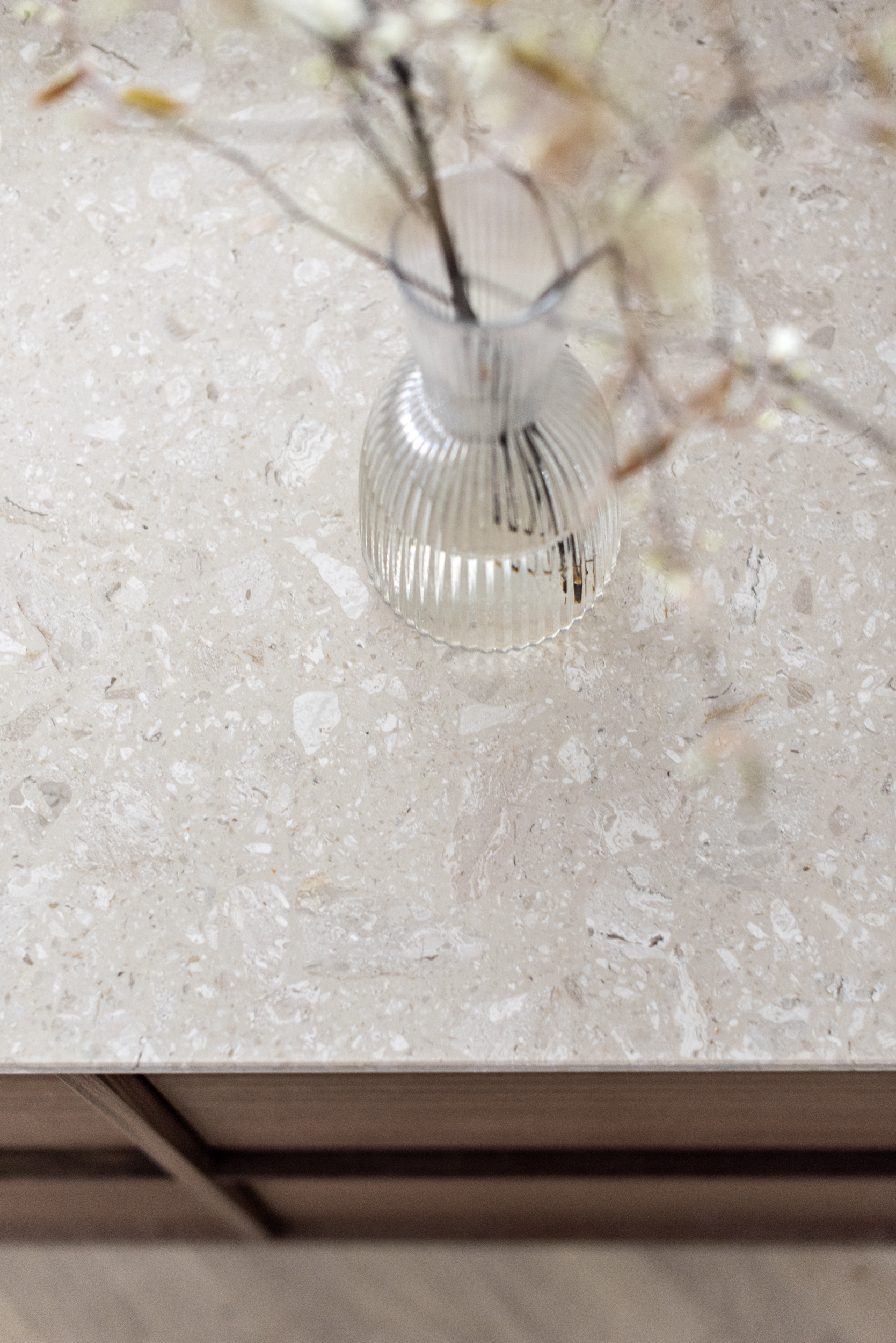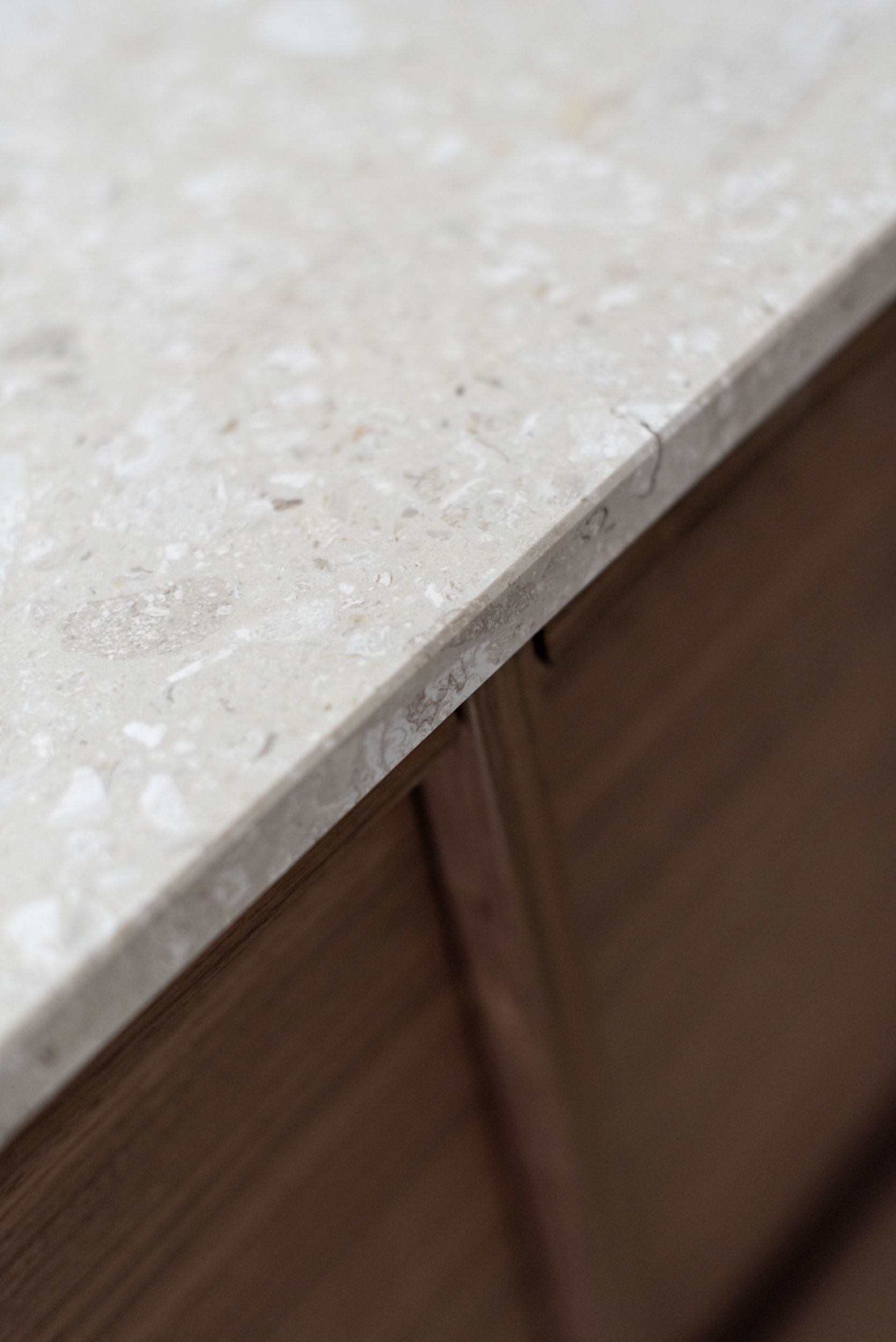 Kombinationen av vår front True Walnut med en bänkskiva i Terazzo - en perfekt match!
