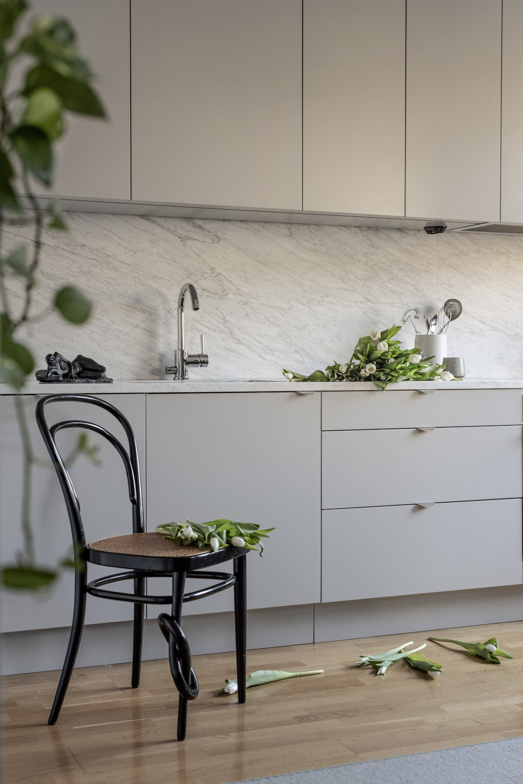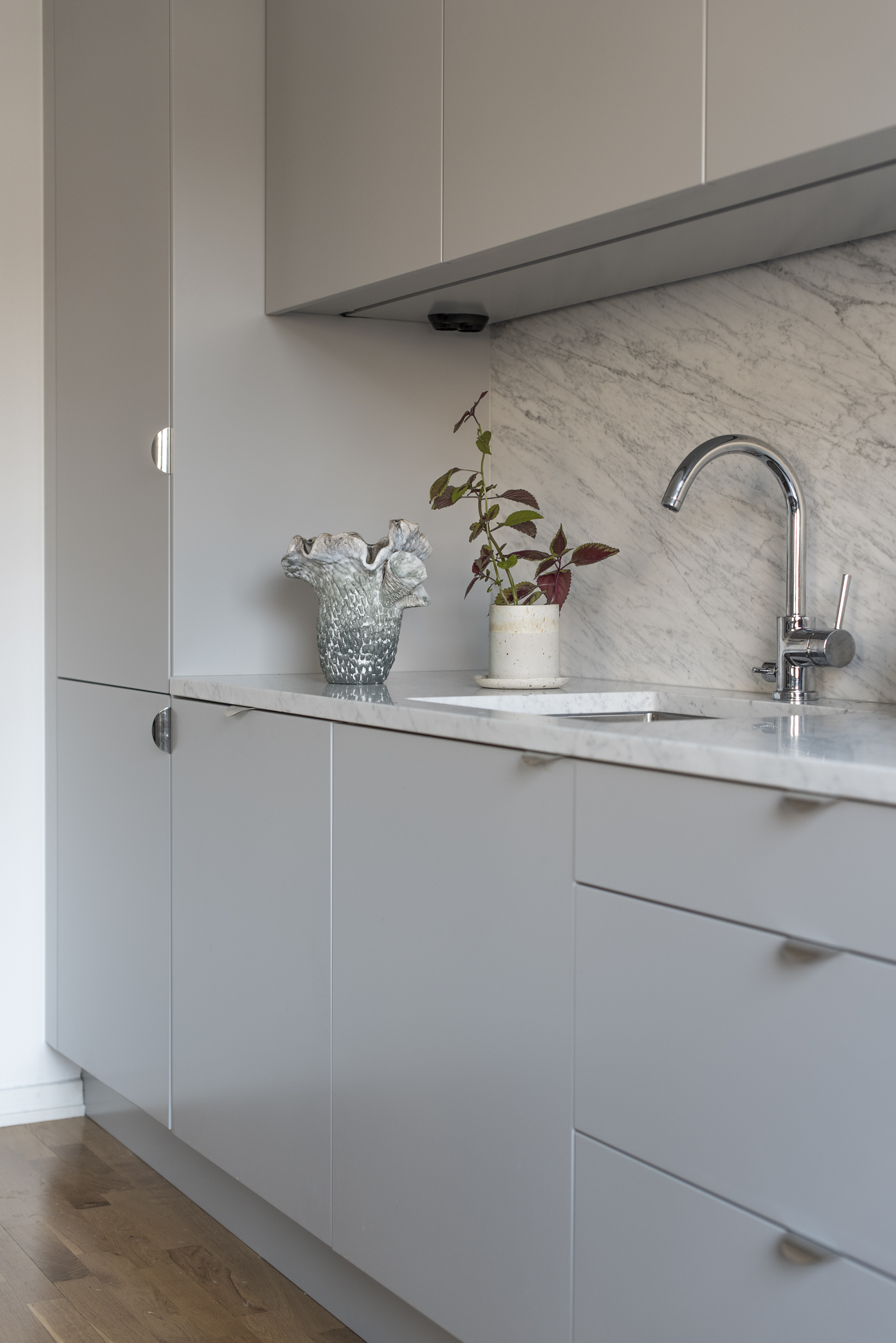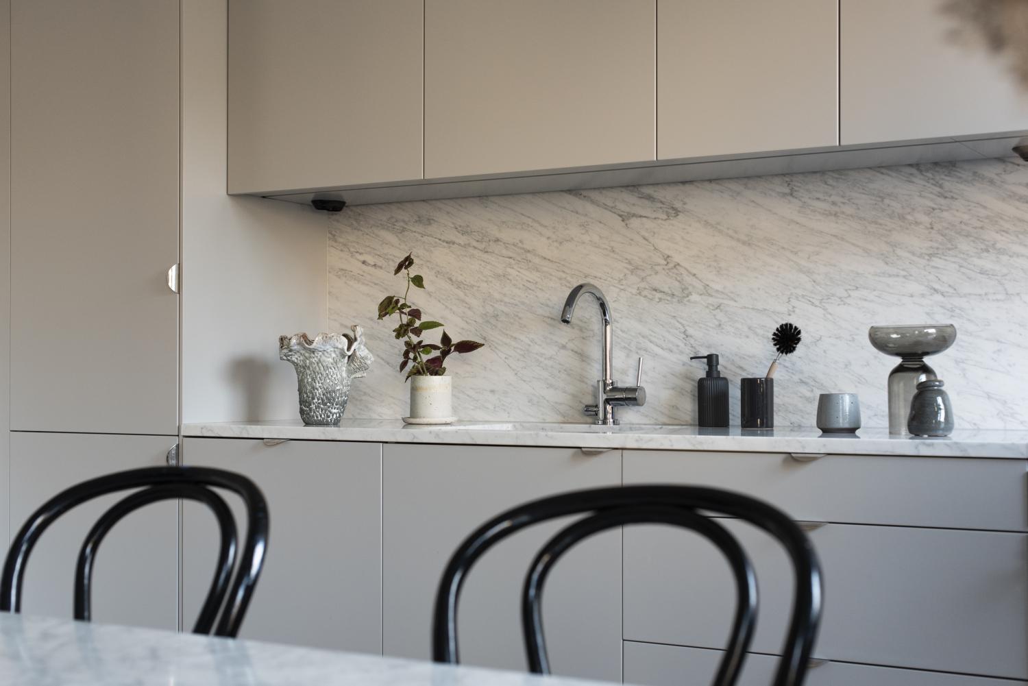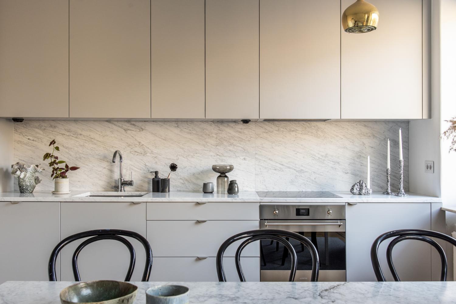 Blekingegatans sobra stil är skapad med fronter anpassade till två olika köksstommar, Ikea FAKTUM och METOD.