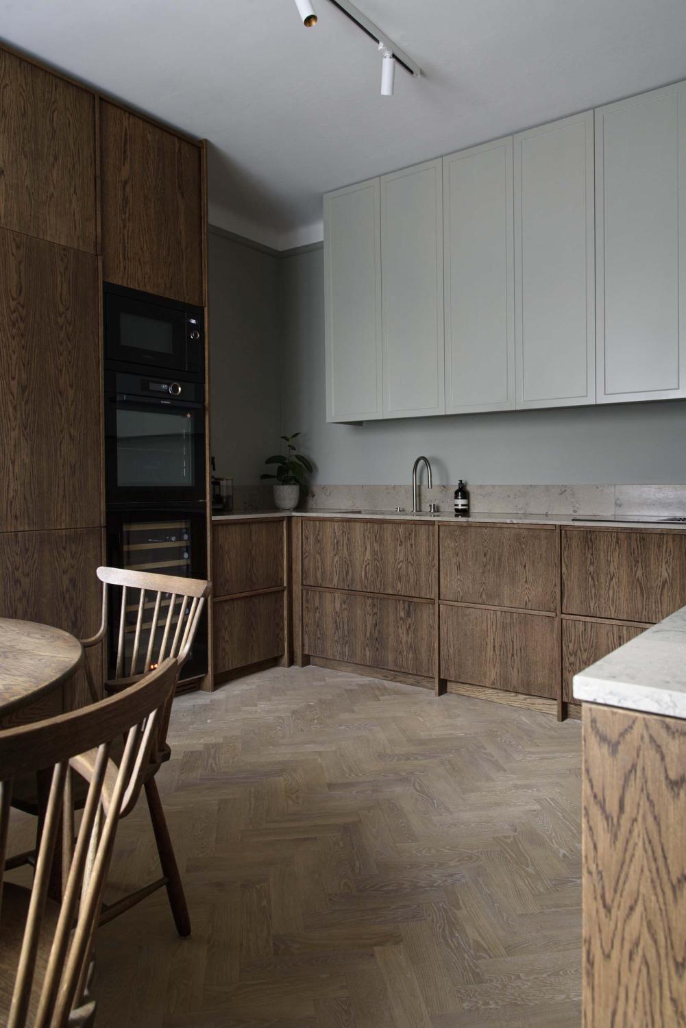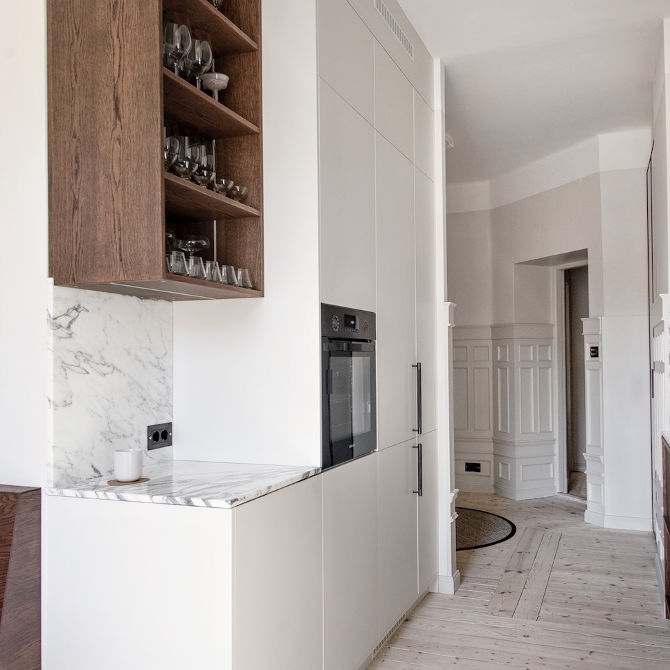A mixture of fronts and framing to cabinets from IKEA with supplements of unique furniture produced by us