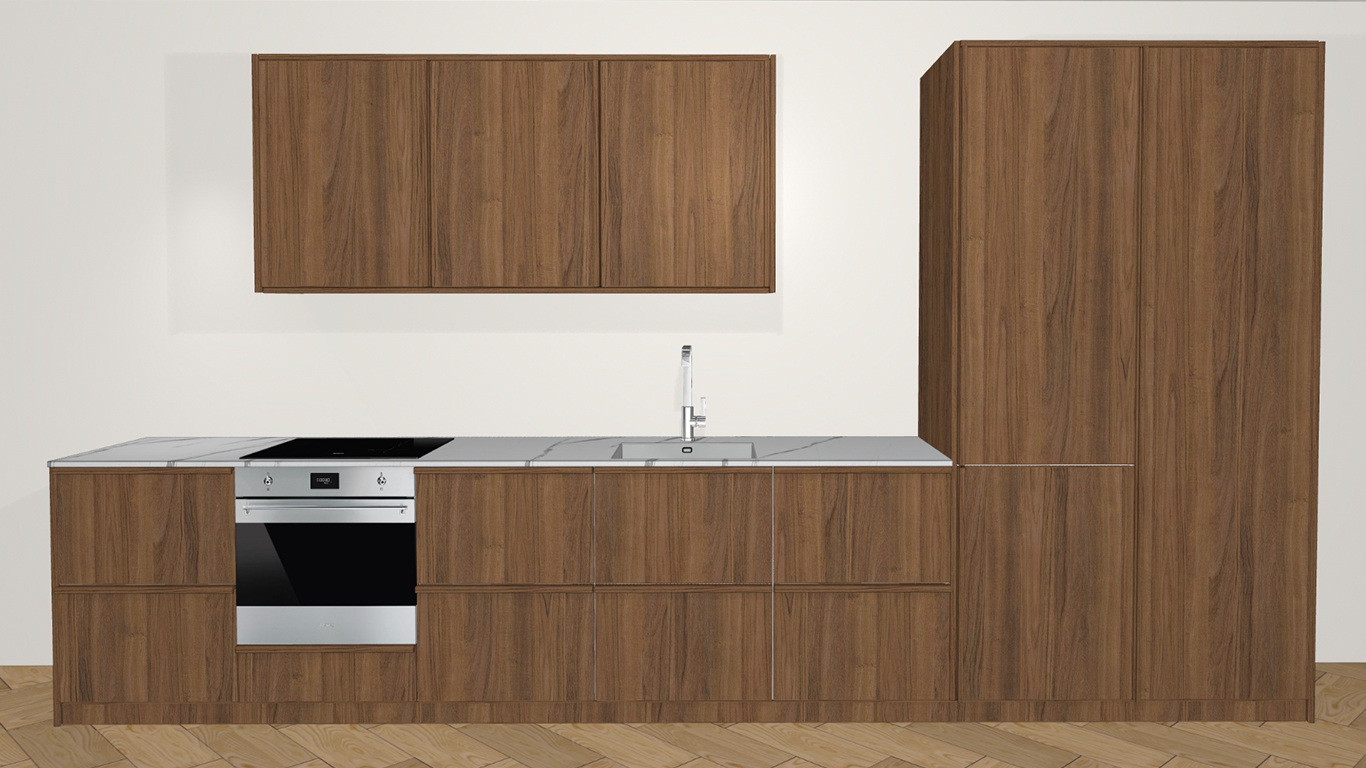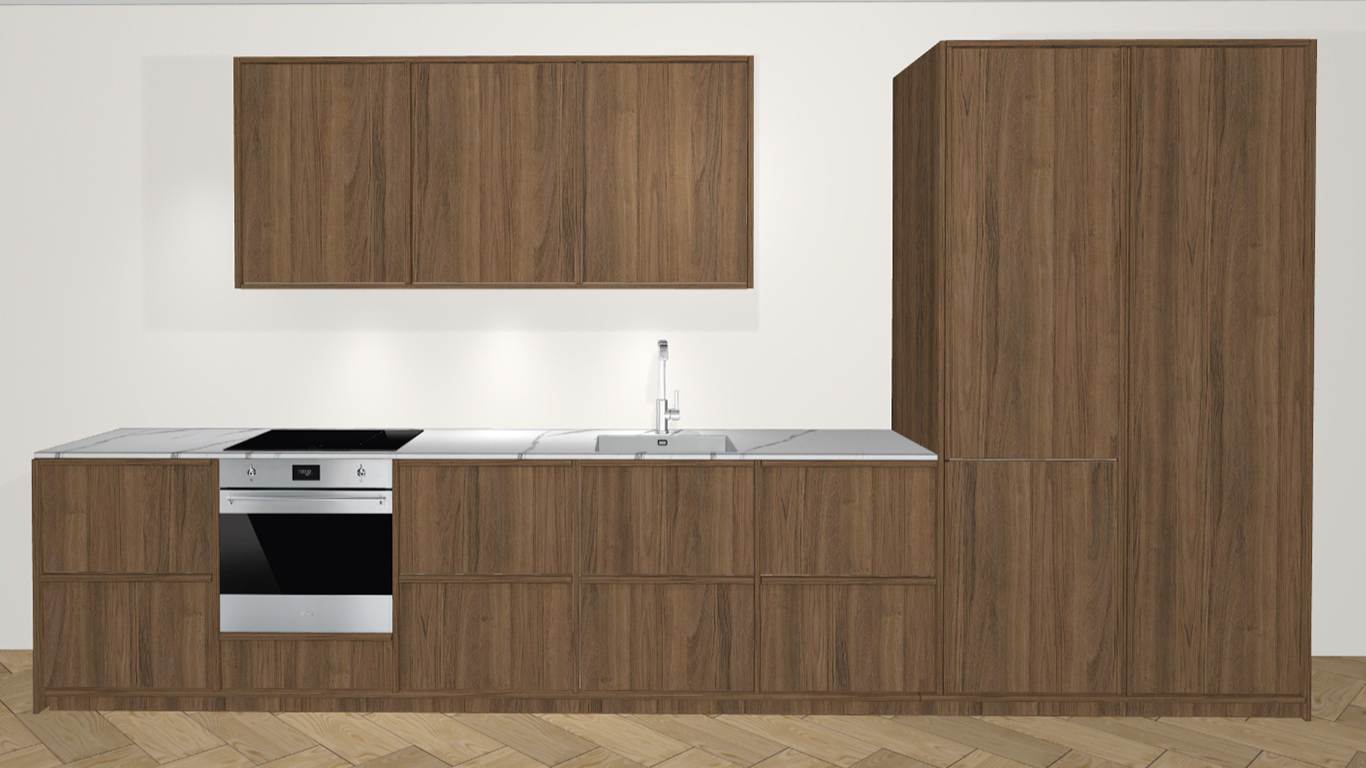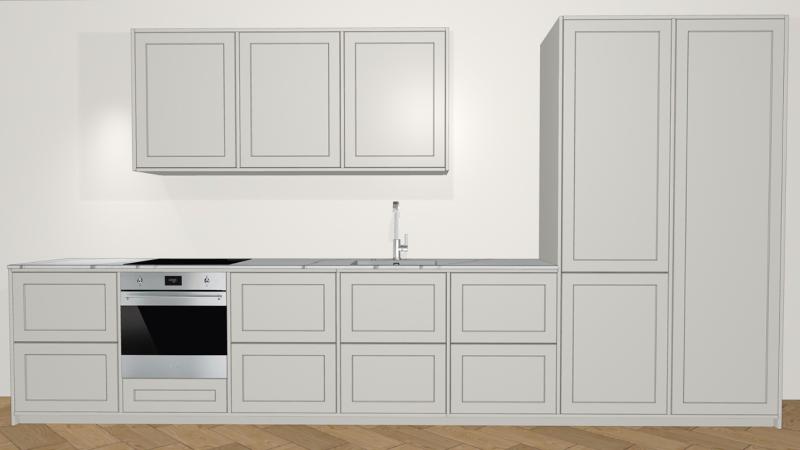 Priset är baserat på fronter i träfanér med distanslister, inklusive täcksidor och golvsockel. Exkluderat från priset är stommar från Ikea, bänkskiva, vitvaror, inredning såsom lådor och hyllplan, belysning, push-to-open, color match och fraktkostnader