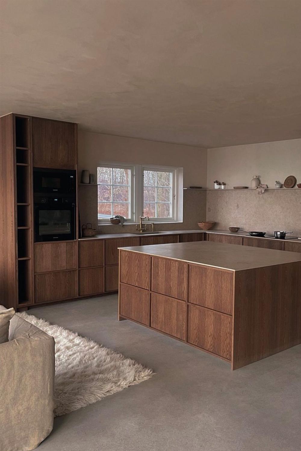 Med betonggolv och pustsade väggar är detta kök ett med naturen och vår front Dark Oak har en självklar plats.
