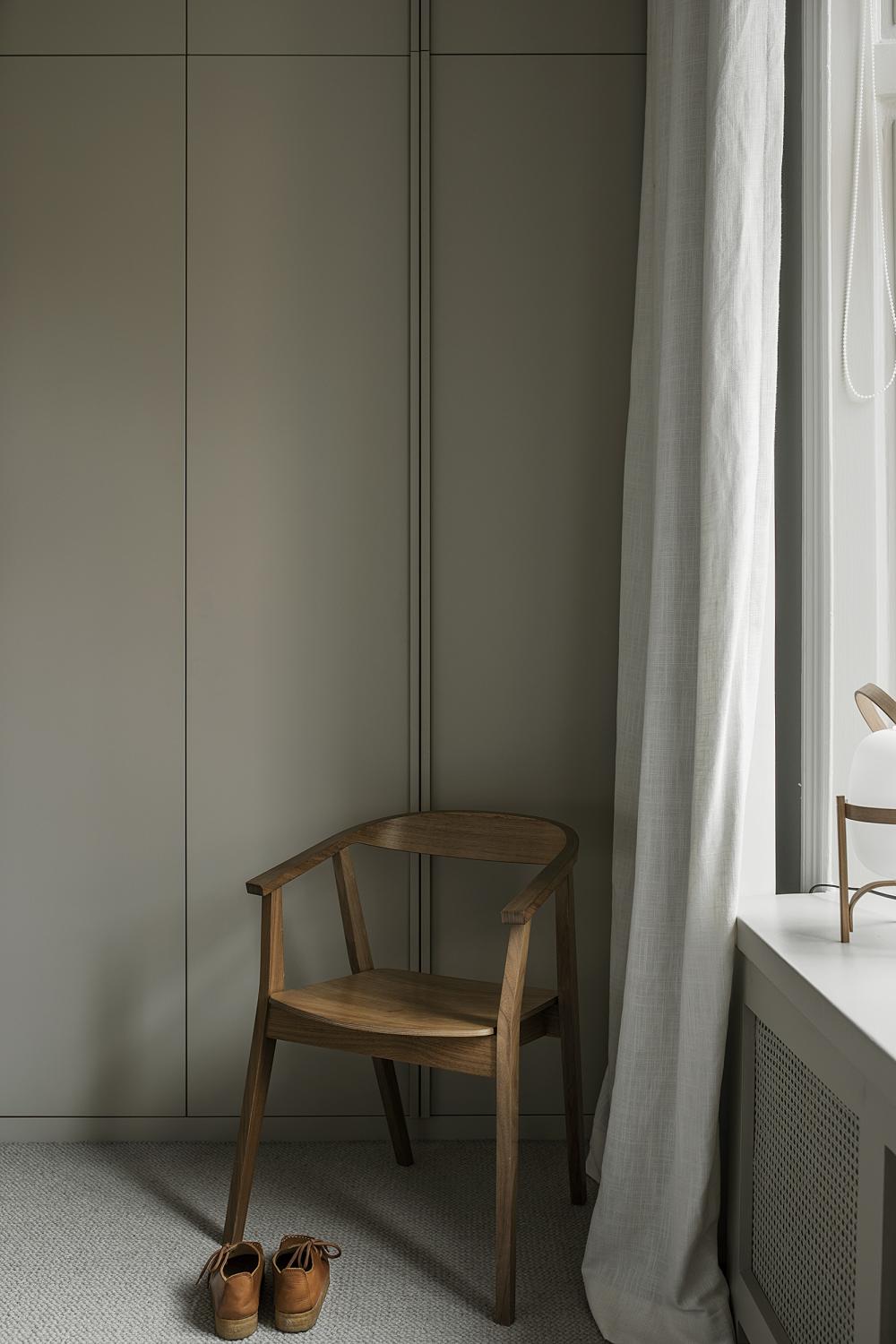 Lackade garderobsdörrar i ask-fanér med grepplist hängandes på Pax-garderober från IKEA.