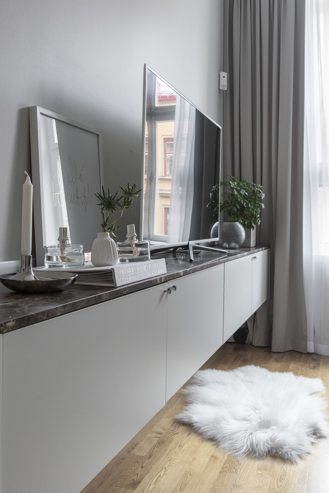 Stenskivan på nattduksbordet och förvaringsmöbeln är i marmorn "Emparador Dark".