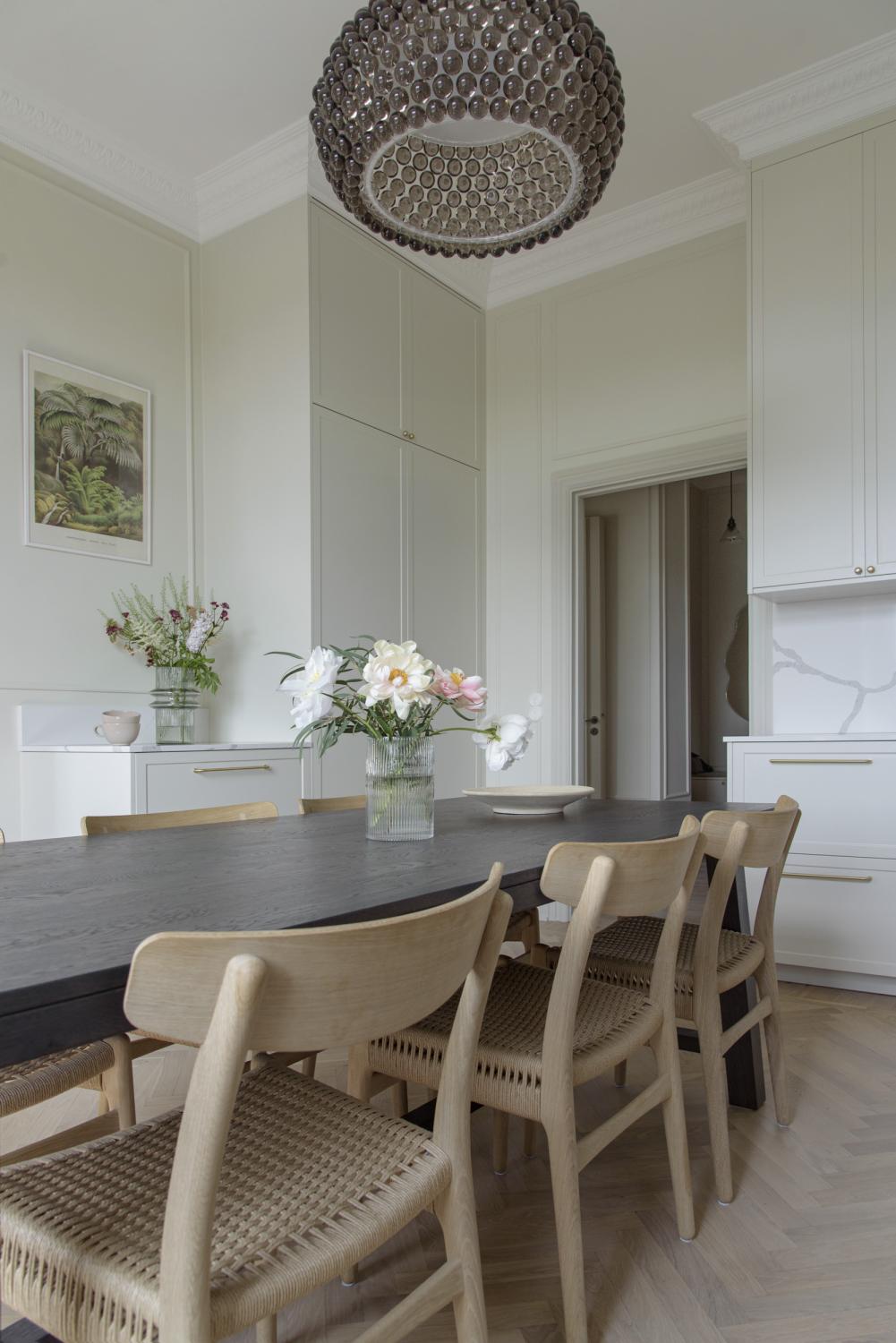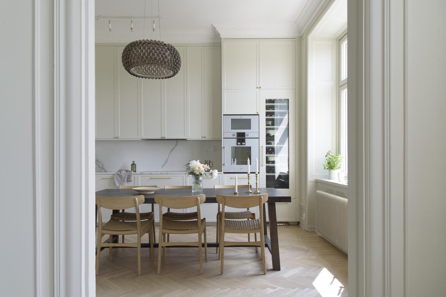 I hjärtat av Vasastan möter vi detta tidlösa kök rikt på ljusinsläpp.