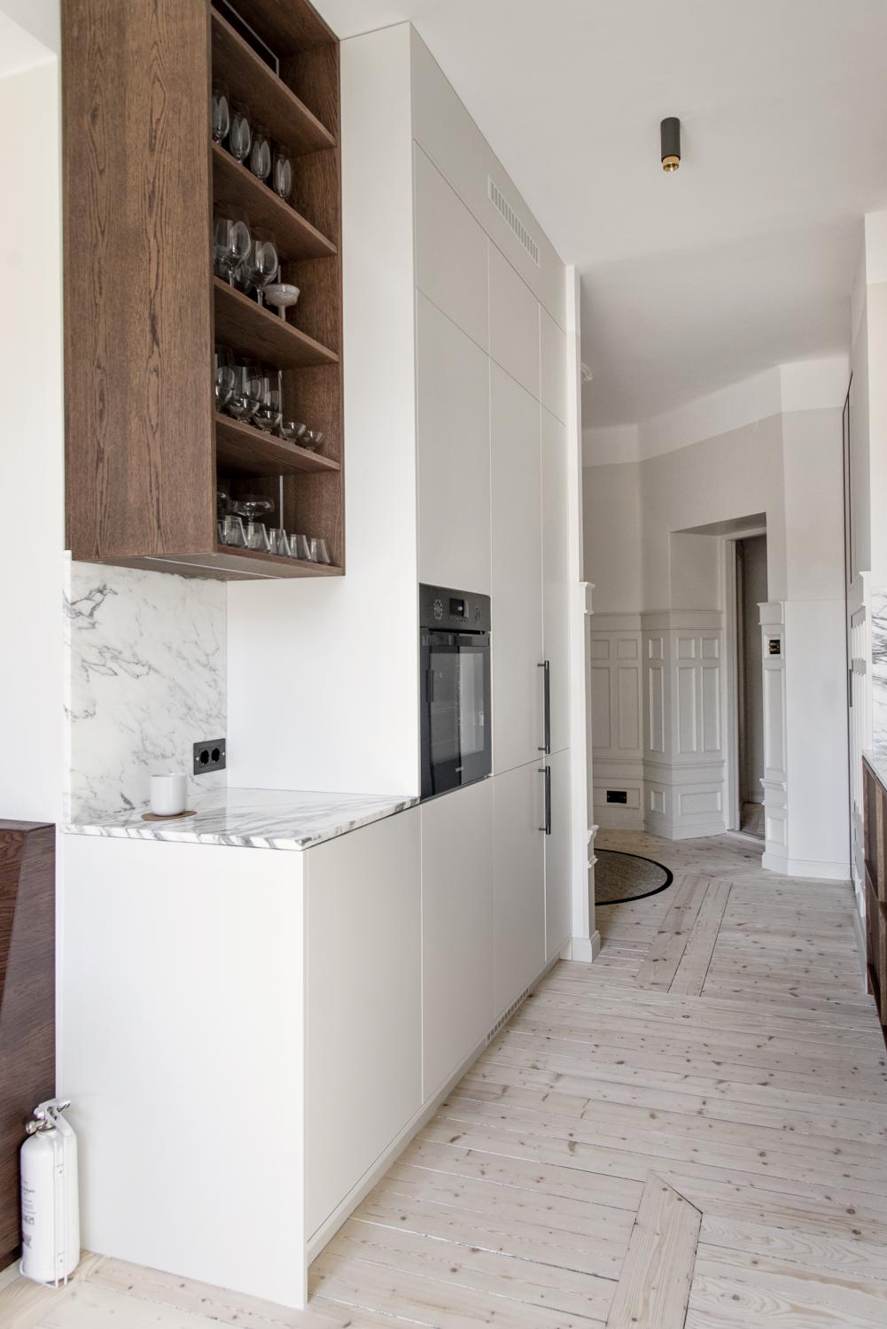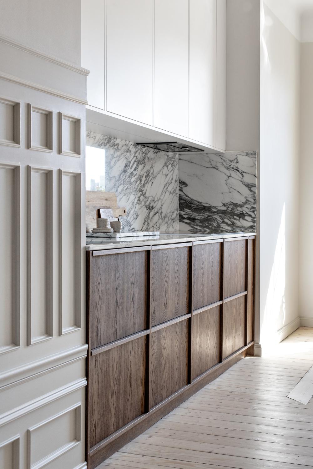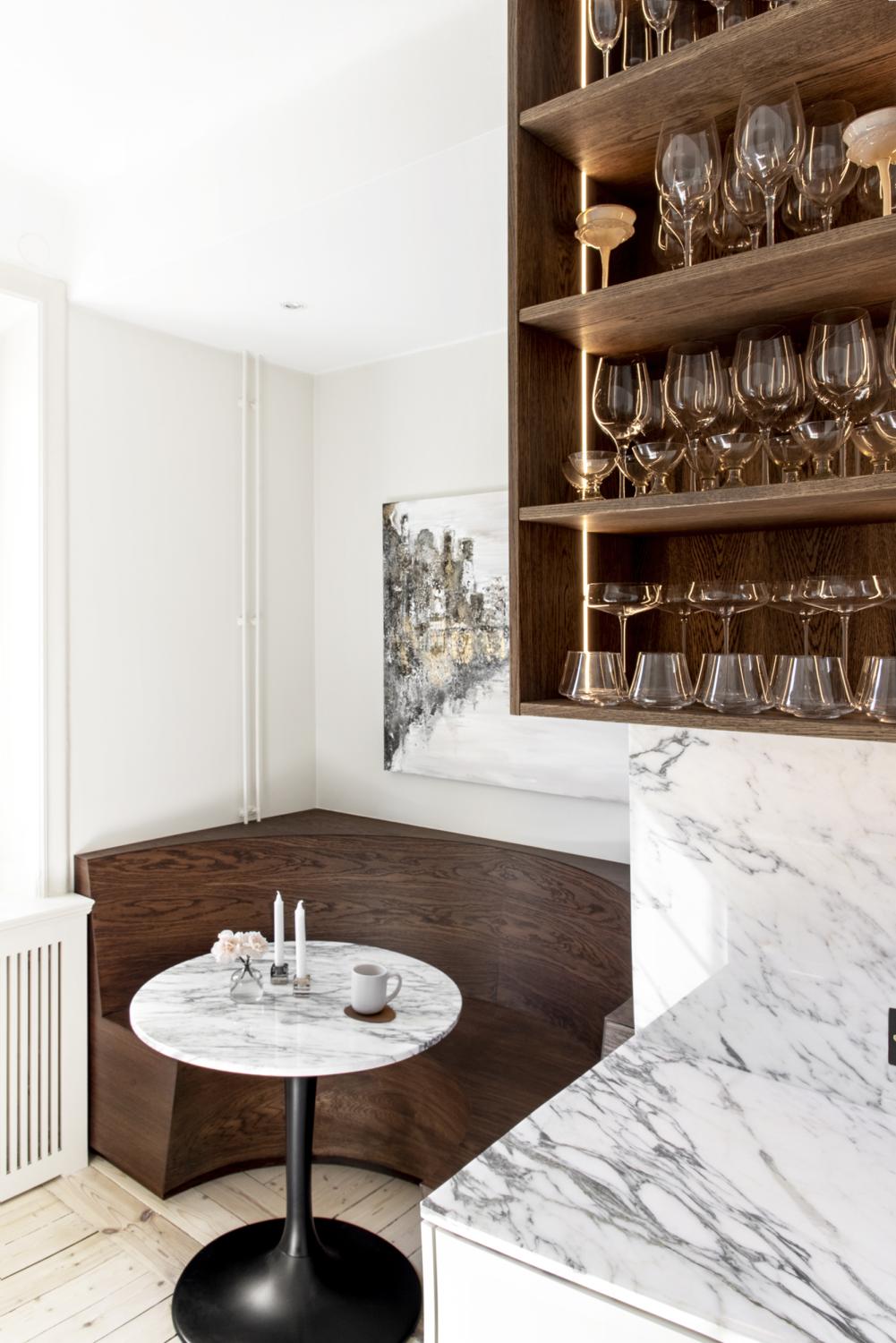 Kombinationen av det praktiska med Ikea stommar och exklusiviteten från det specialbeställda skåpet finner du i detta kök!