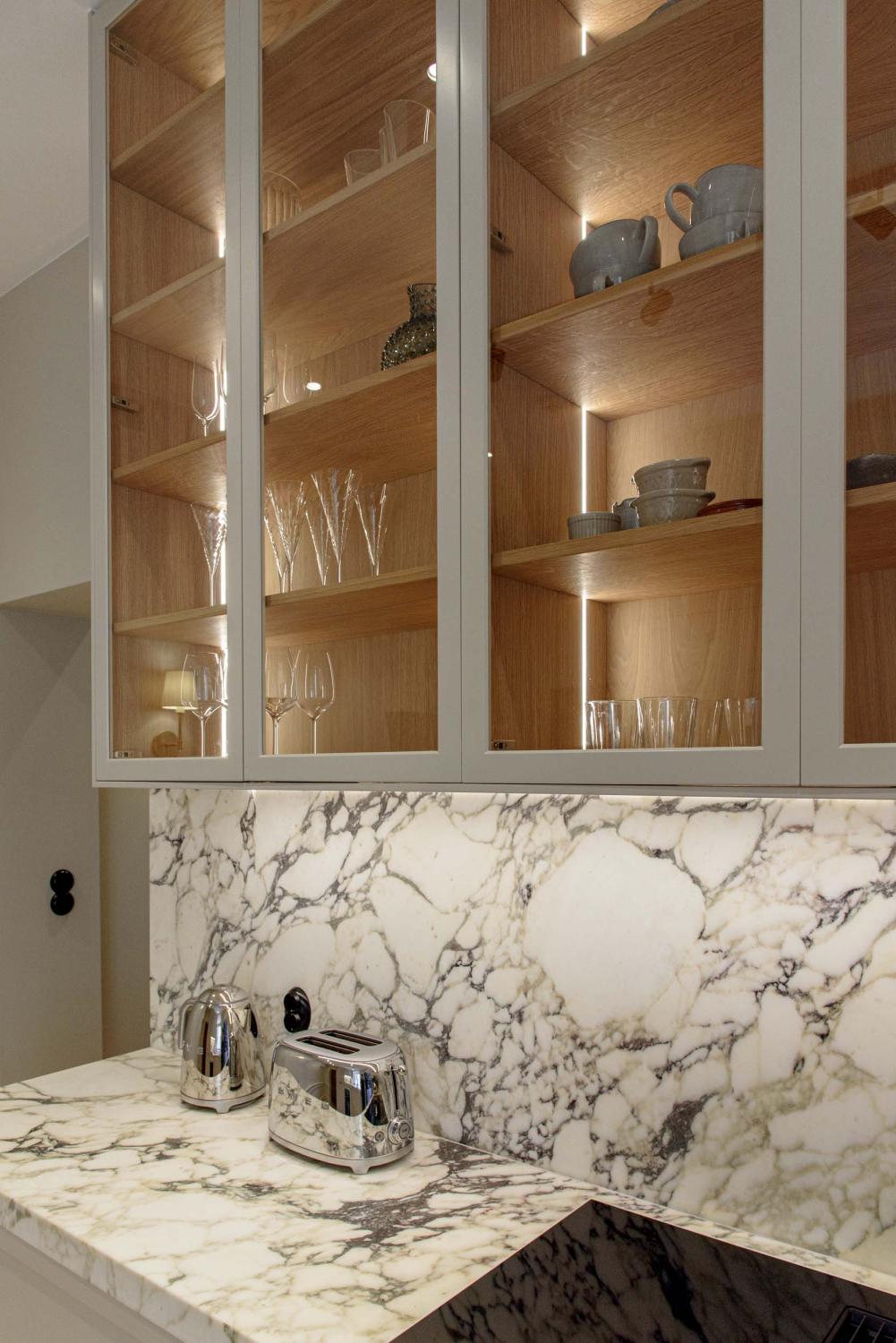 Luckans linjer skapar en symmetri i köket som upprätthålls genom push-open funktionen istället för knoppar och handtag.