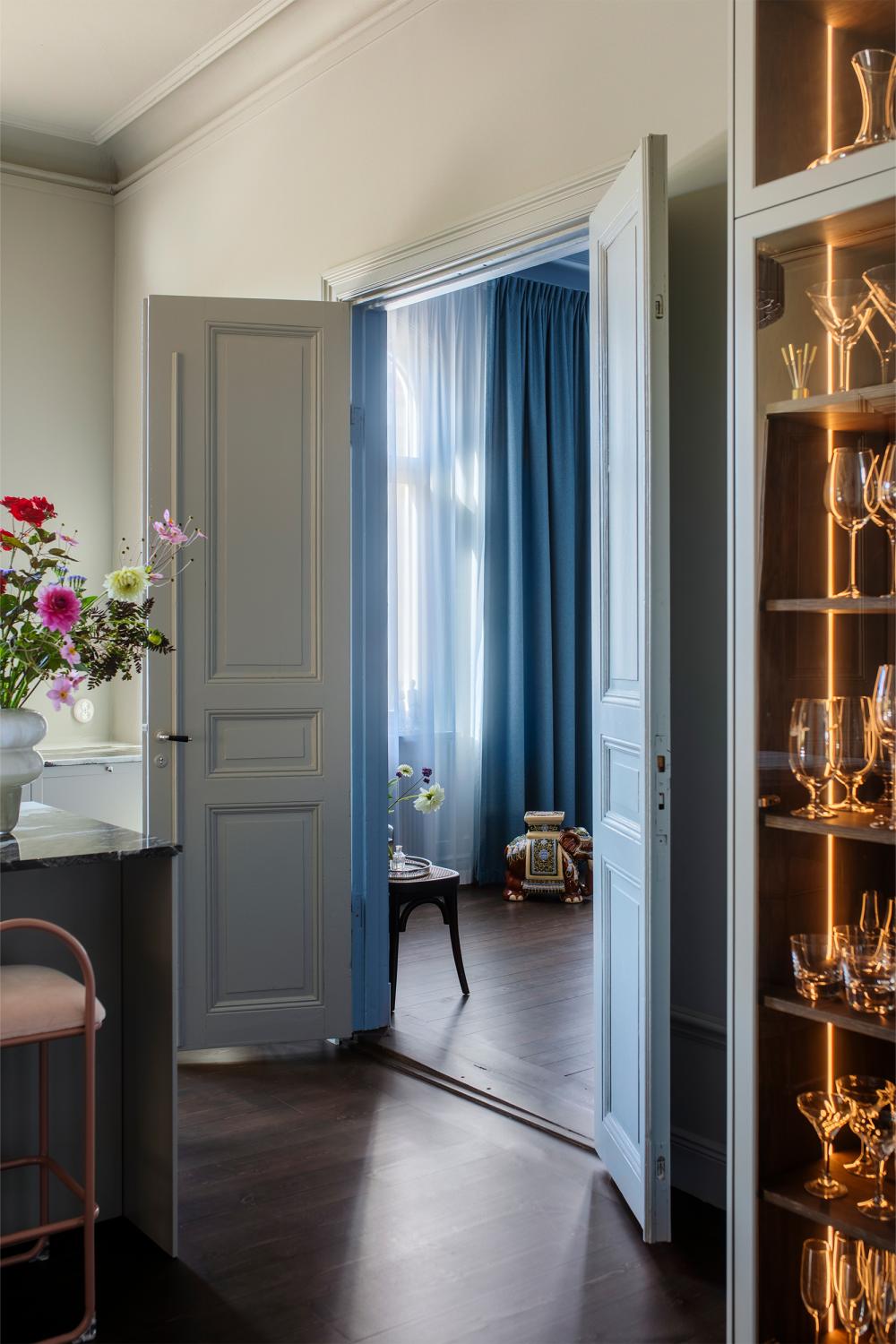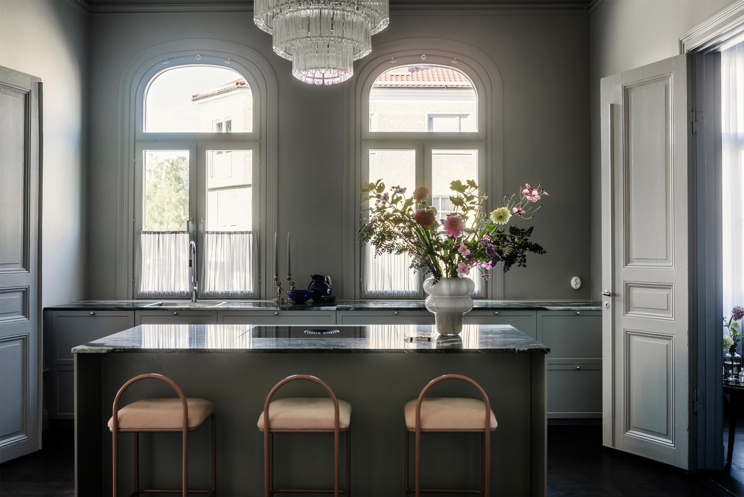 Trots att lägenheten genomgått en stor renovering, kvarstår en känsla som fanns redan på visningen. Kakelugnarna, takhöjden och dem vackra fönsterna som släpper in mycket ljus gjorde valet lätt. Det var den här lägenheten det skulle bli.