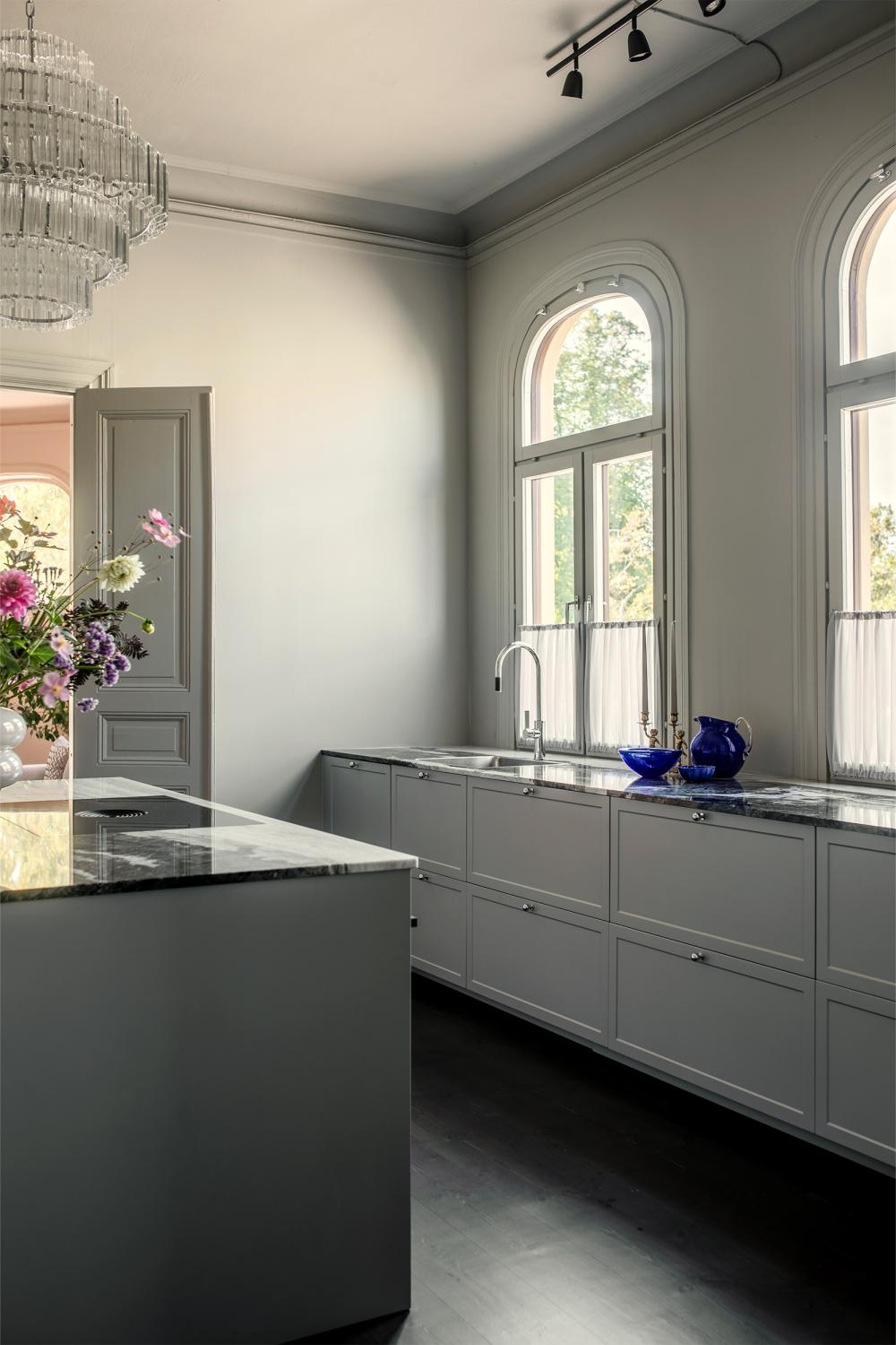För att åstadkomma detta har en del prioriteringar gjorts i hur köket skulle utformas. Bland det viktigaste på prioriteringslistan fanns en köksö och att inte ha några överskåp ovanför köksbänken. Detta följt av ett vitrinskåp med integrerad belysning och en strategisk placering av vitvaror för att dölja dessa så gott det går.