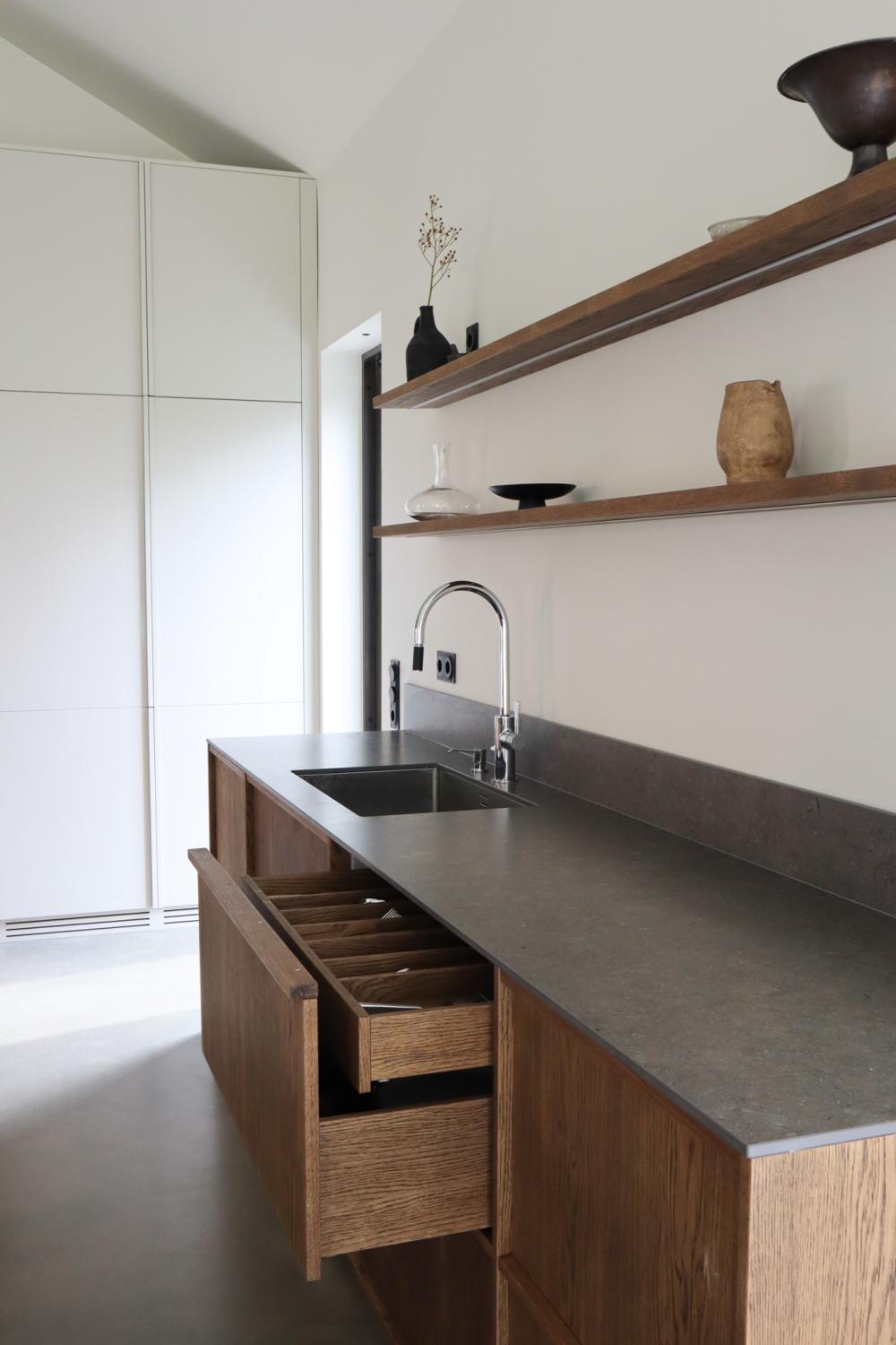 Luckor i Dark Oak med grepplister, samt släta luckor i Coco med grepplister